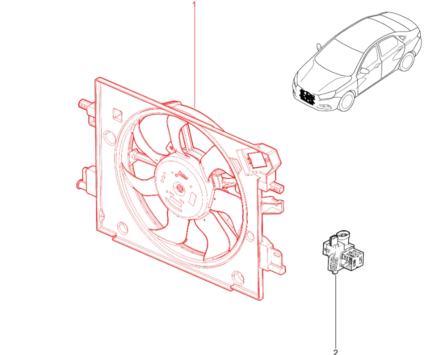 Штатный оригинальный электровентилятор с кожухом для Lada Vesta, Largus.