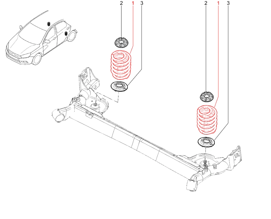 Штатная оригинальная пружина задней подвески для Lada Vesta SW (универсал, кроме Кросс).