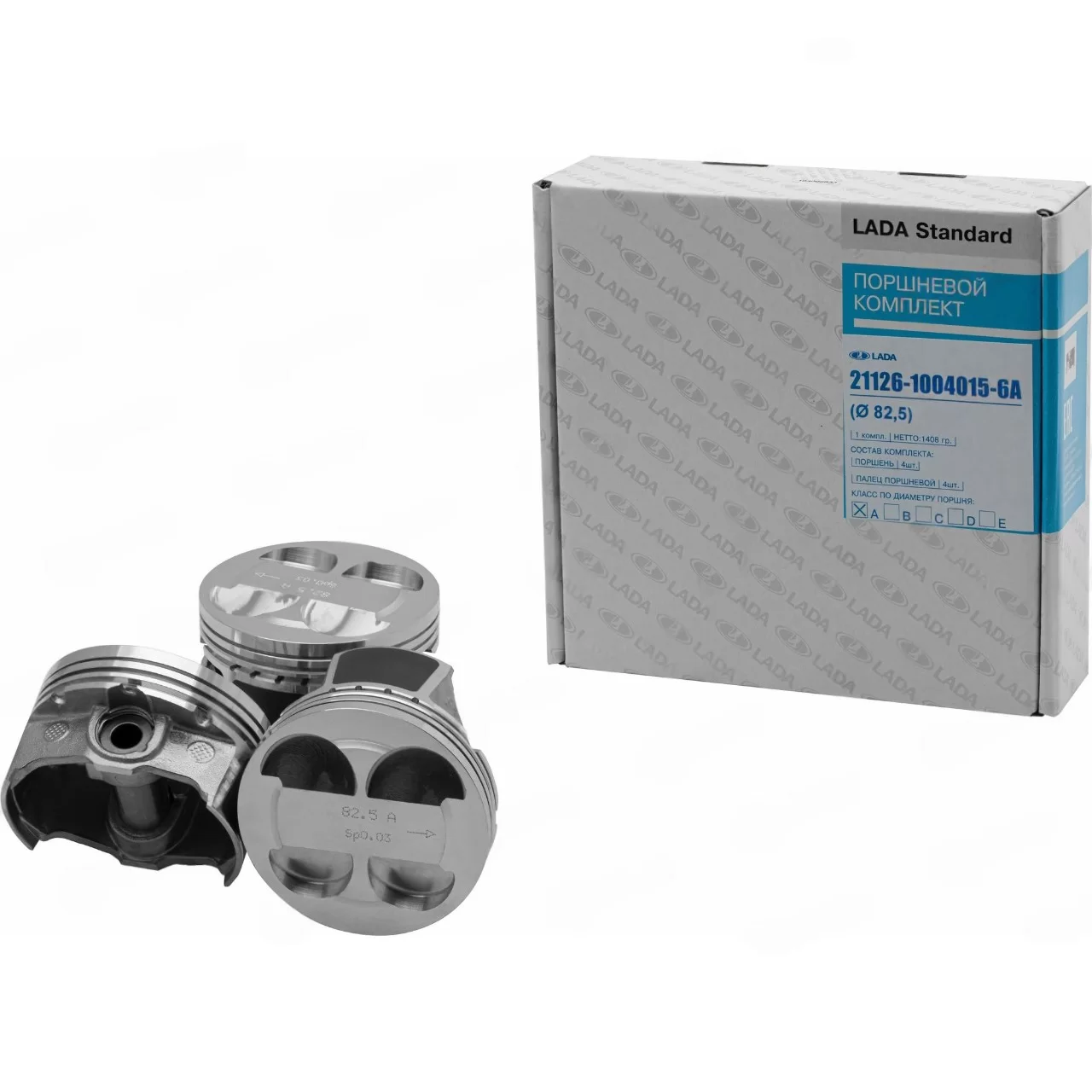 Штатный оригинальный комплект поршней 21126 (4 поршня и 4 пальца) ремонтный размер 82,5 (дв. 1,6 л., 16V).