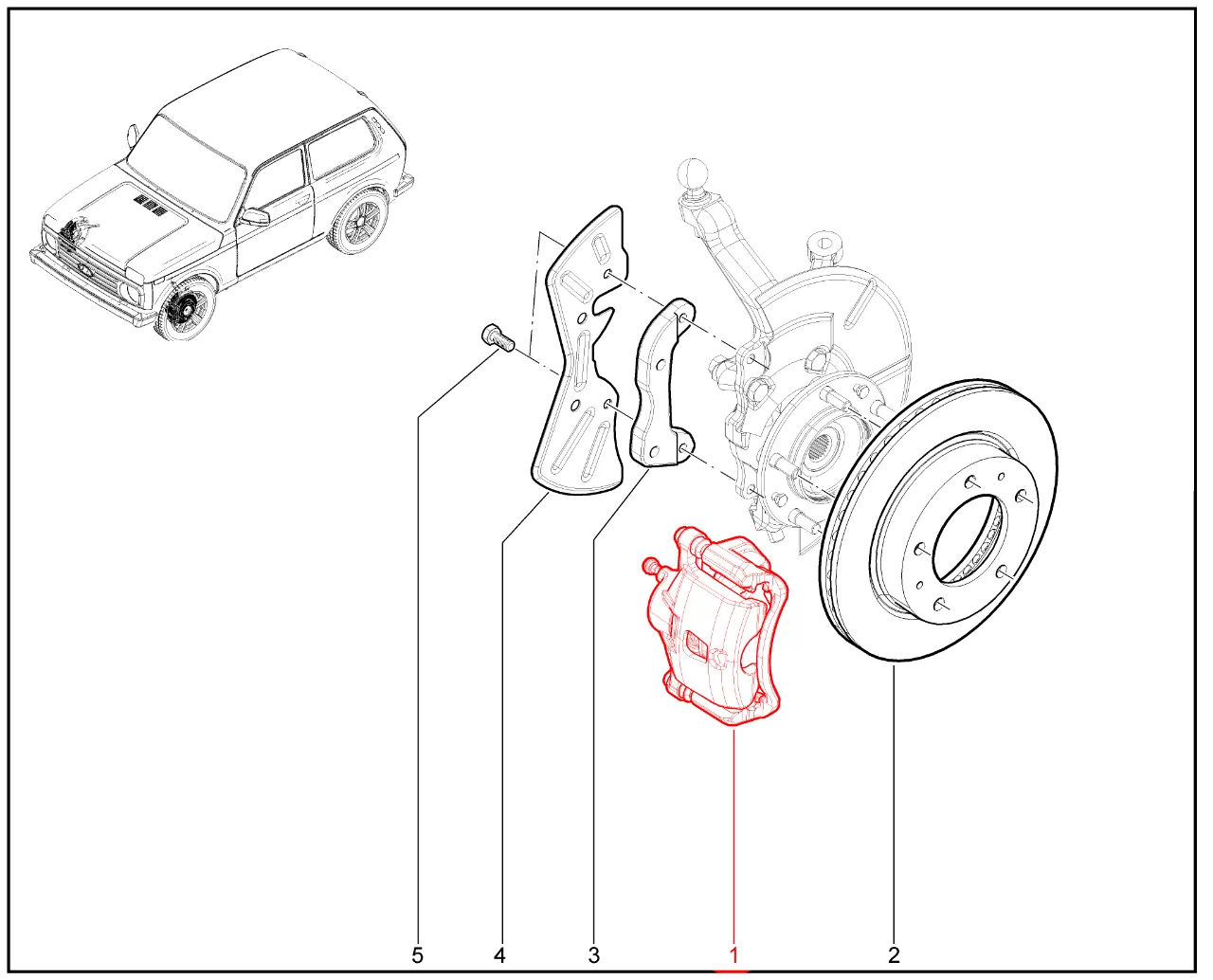 Штатный оригинальный тормоз передний в сборе для Lada Vesta NG, Largus, Iskra, Niva Sport , Niva Travel.