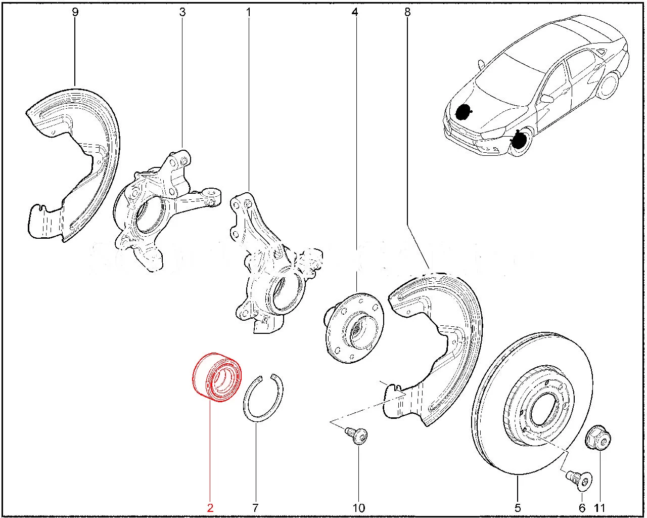 Штатный оригинальный подшипник ступицы переднего колеса для Lada Vesta, XRAY, Largus с АБС.
