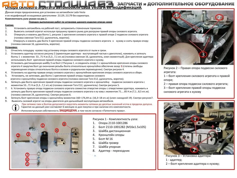 Смотрите также обзор усиленных правых опор двигателя для Лада Веста.
