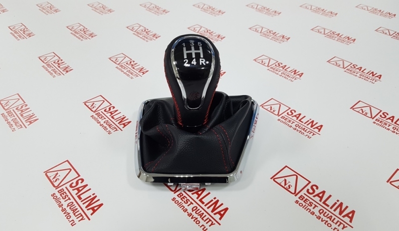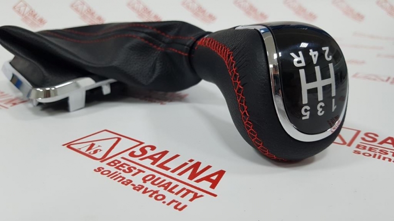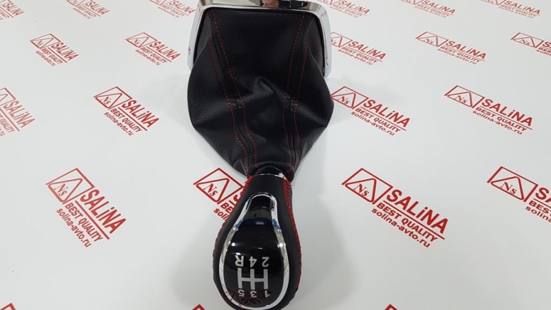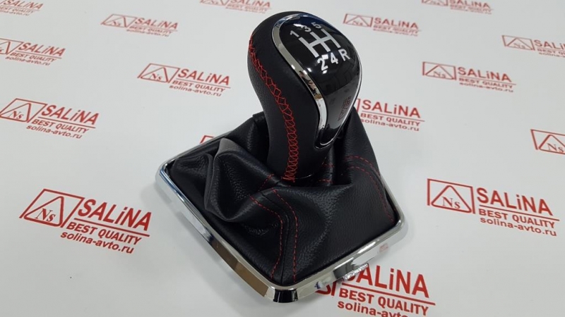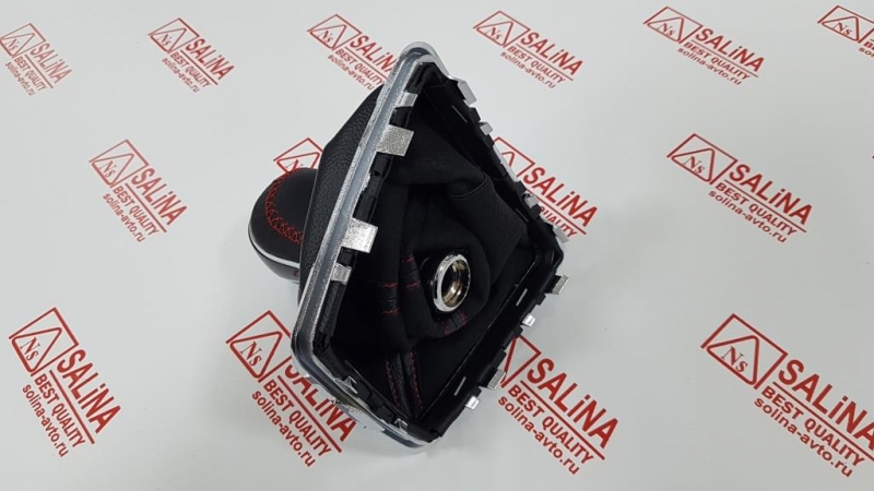 Ручка КПП с пыльником, хромированной рамкой и прострочкой на Лада Веста