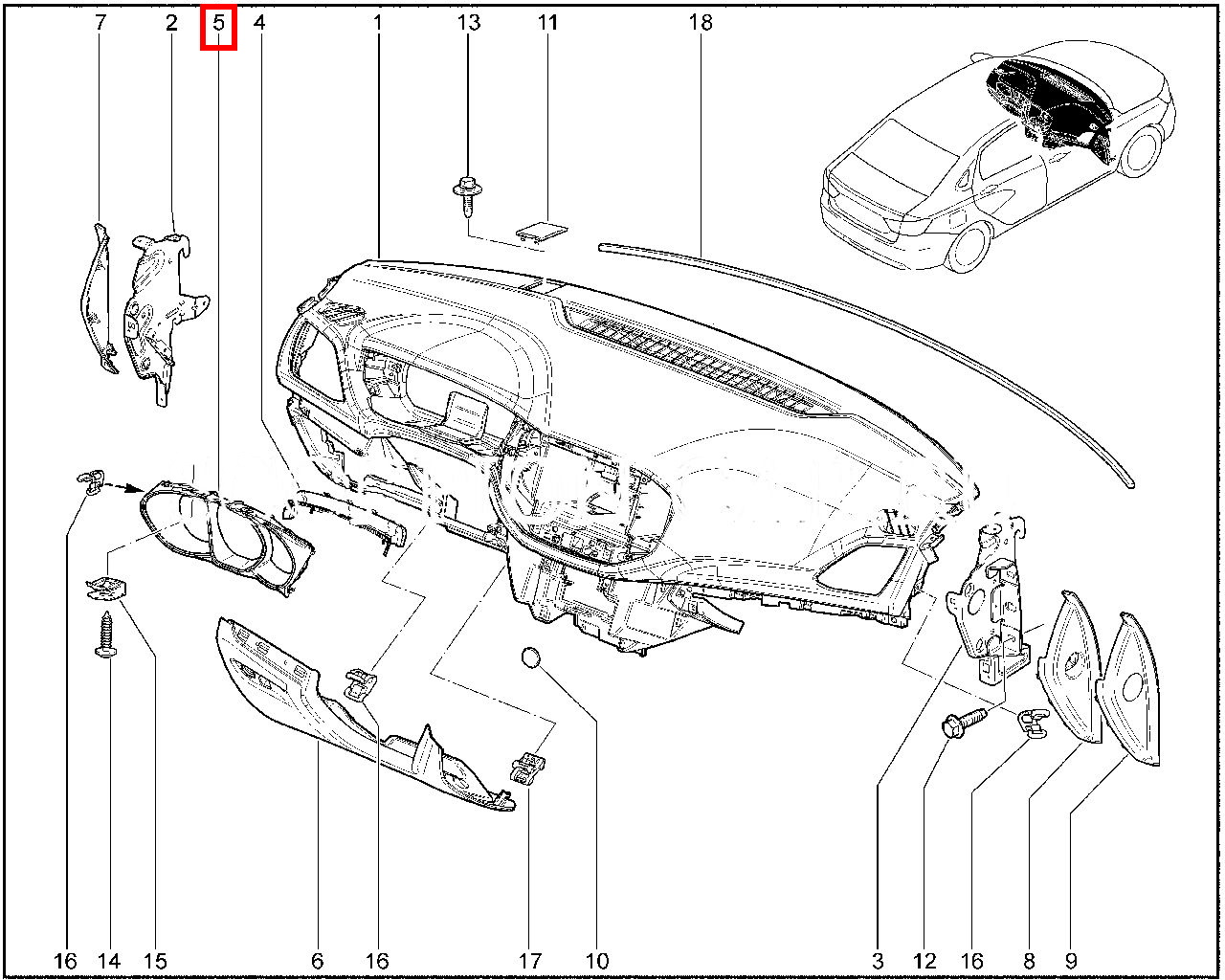 Оригинальный штатный щиток панели приборов Лада Веста в комплектации Люкс с серебристой окантовкой.