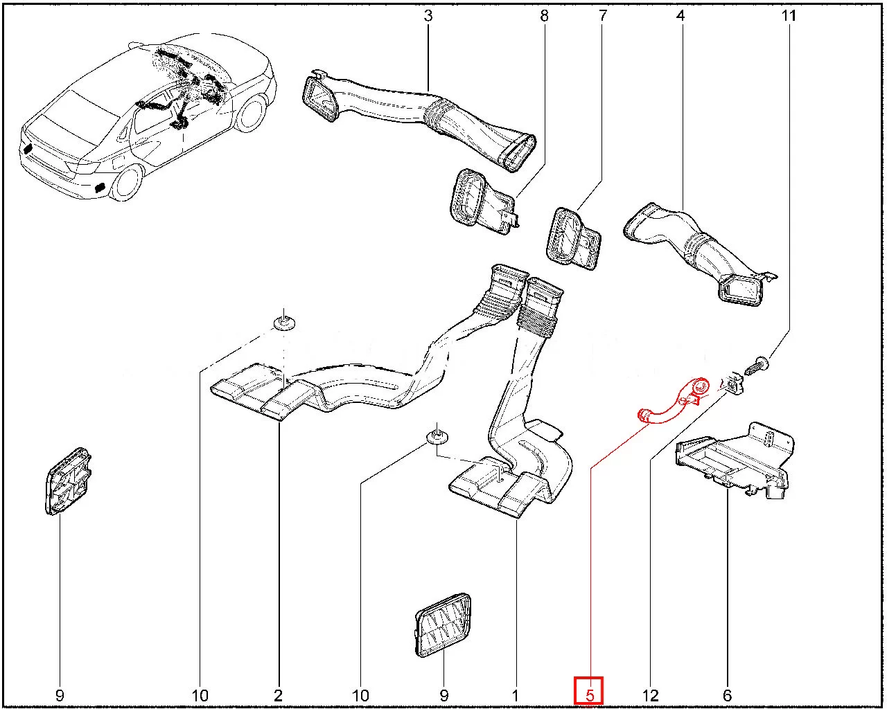 Воздухопровод охлаждения вещевого ящика Лада Веста.