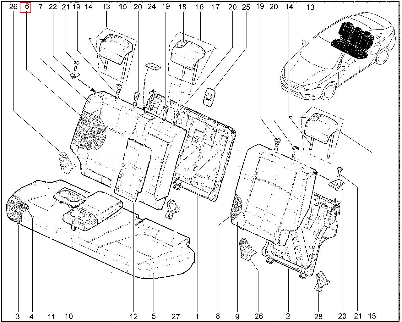Набивка правой спинки заднего сиденья с вырезом под подлокотник для Лада Веста.