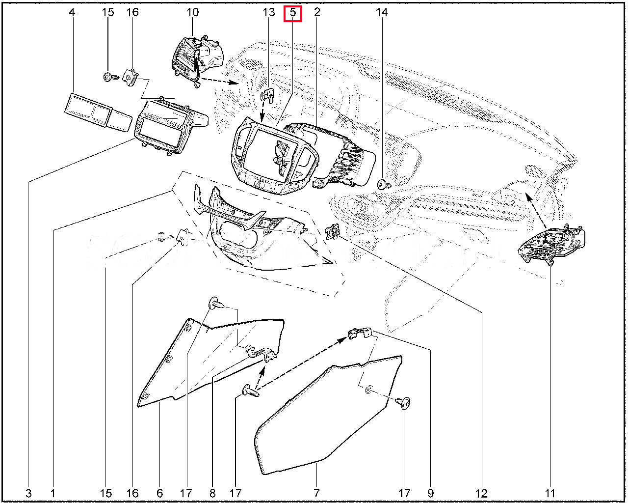 Накладка консоли приборов центральная (окраска черный лак, окантовка - окраска "жидкий хром") для Лада Веста с ММС EnjoY Pro.