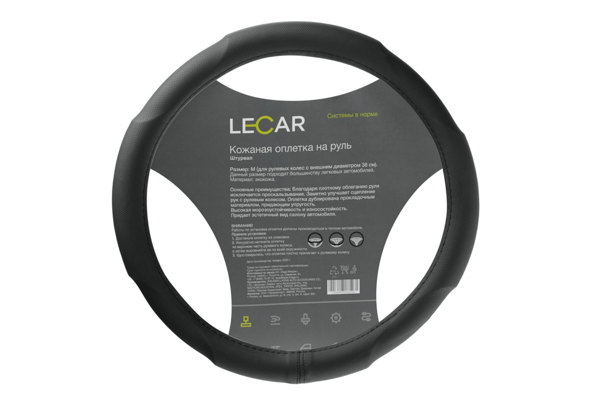 Оплетка на руль LECAR, штурвал, М (38 см.), цвет черный.
