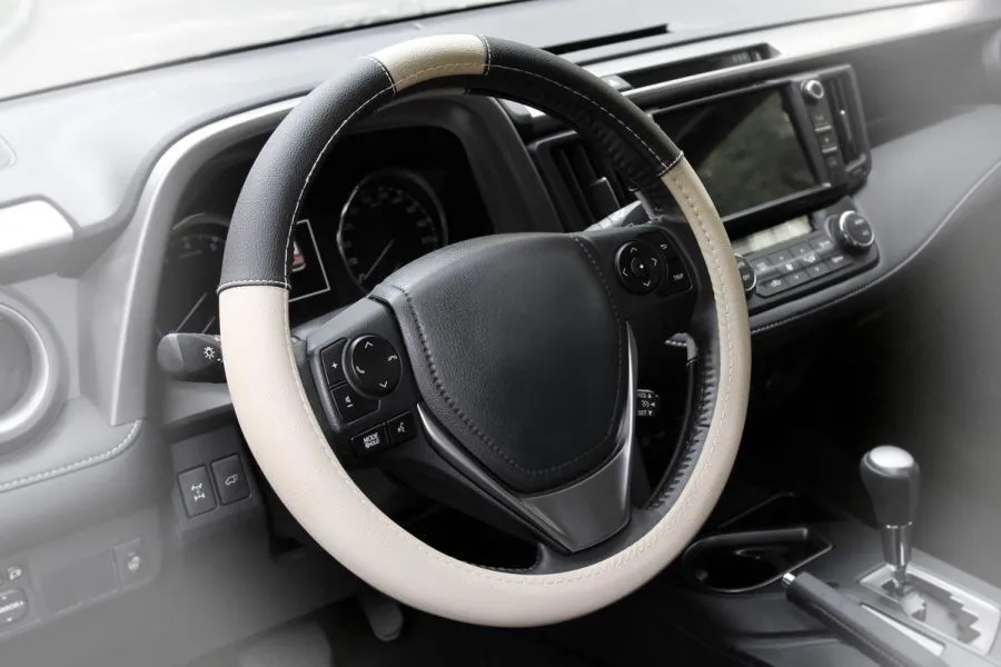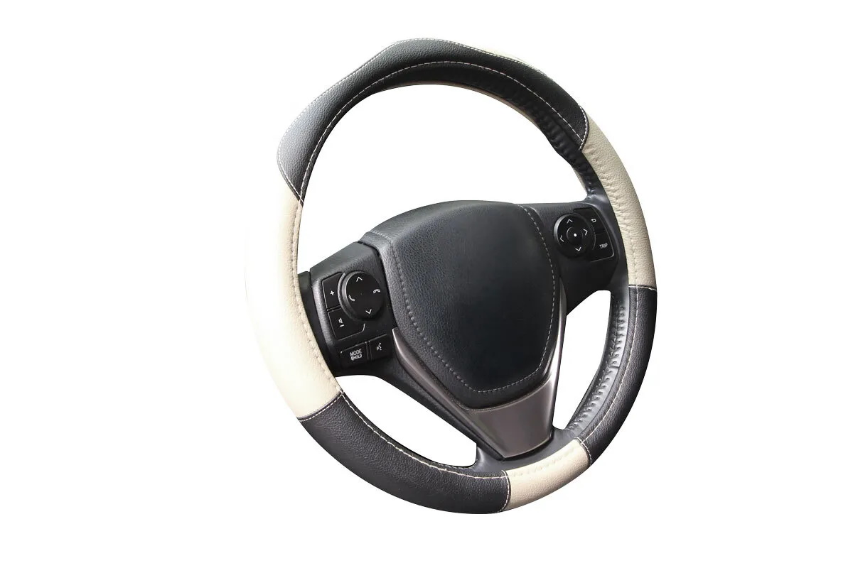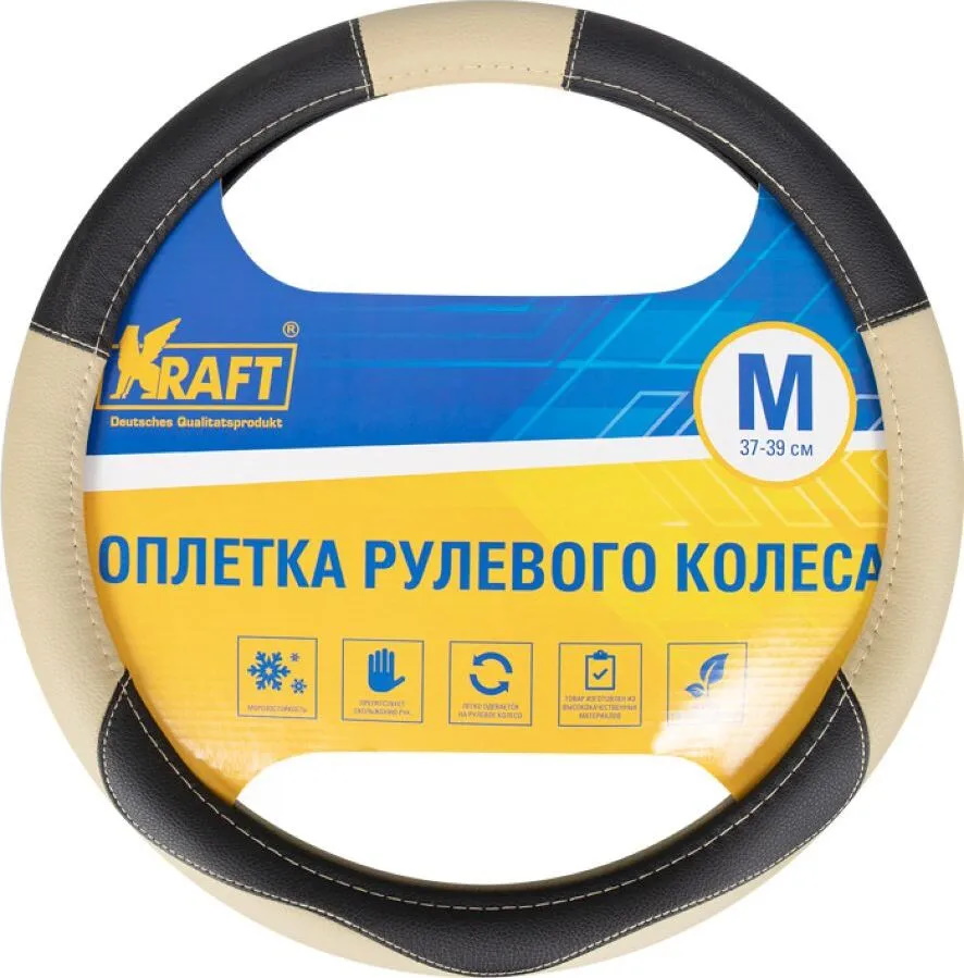 Оплетка на руль KRAFT M 38см экокожа бежевый/черный