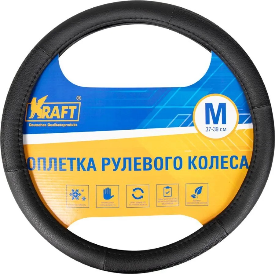 Оплетка на руль KRAFT M 38см экокожа с тиснением черная