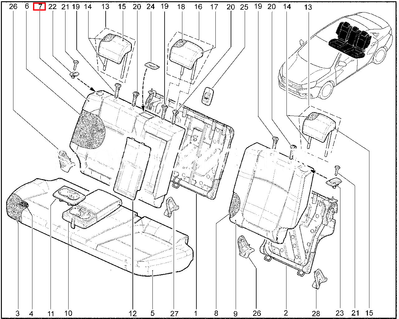 Обивка правой спинки заднего сидения под подлокотник cross+,cross++ /orange для Лада Веста.