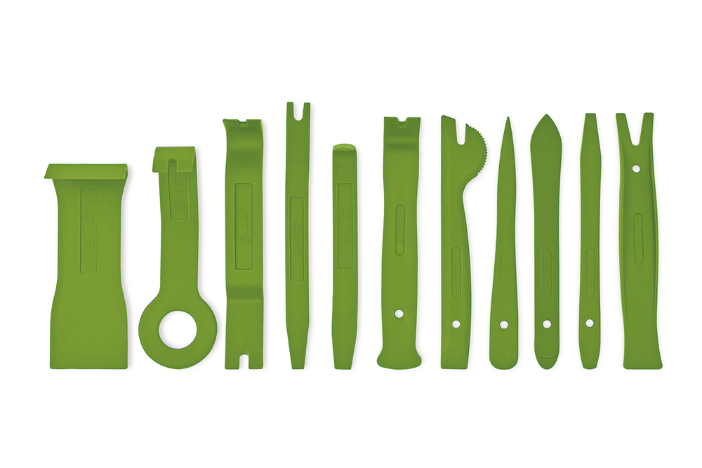 Съёмники изготовлены из нейлона для предотвращения повреждений кузова автомобиля и демонтируемых деталей.