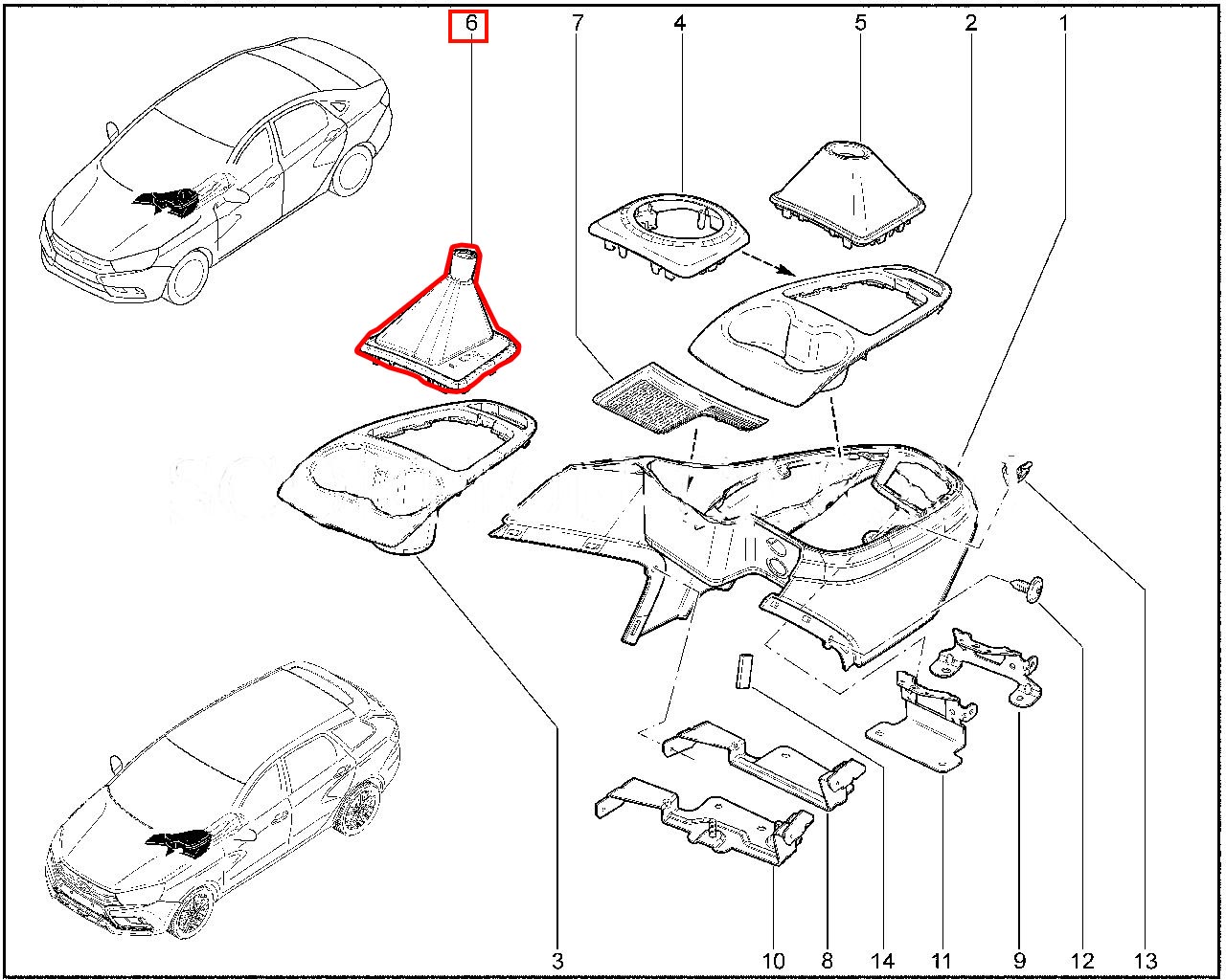 Накладка тоннеля привода переключения передач черная (вариатор) для Lada Vesta