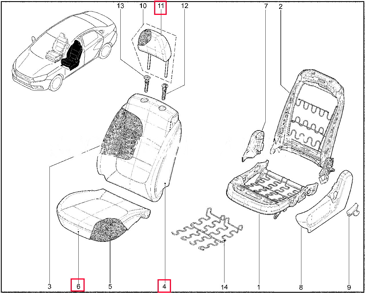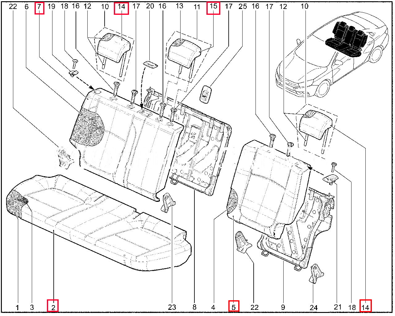 Штатная обивка сидений Black Line (без заднего подлокотника) для Лада Веста
