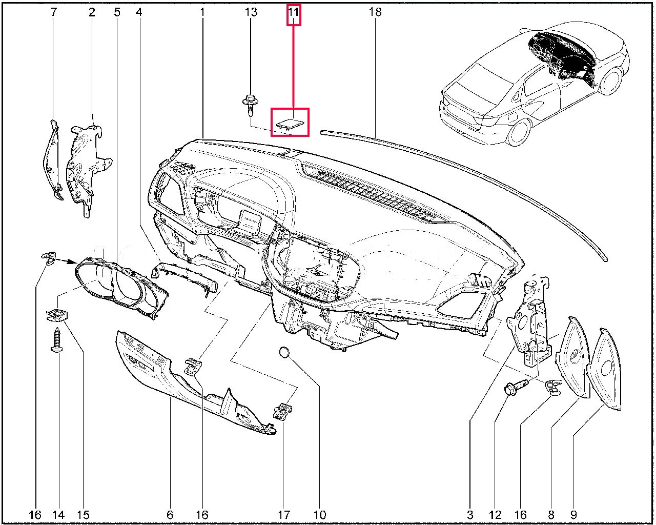 Заглушка верхняя (усилитель) торпедо для Лада Веста.