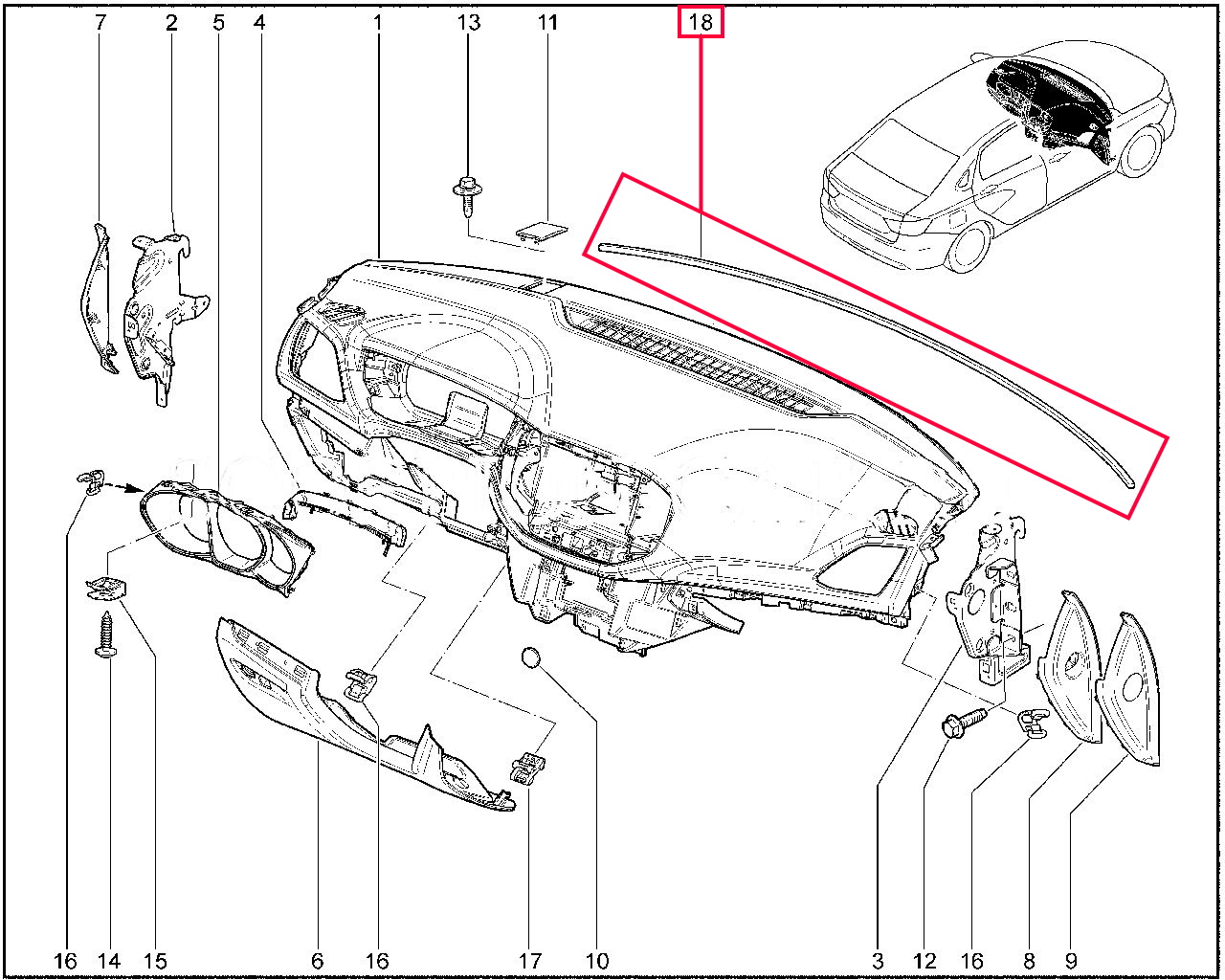 Штатный уплотнитель панели приборов (между торпедо и лобовым стеклом) для Лада Веста.