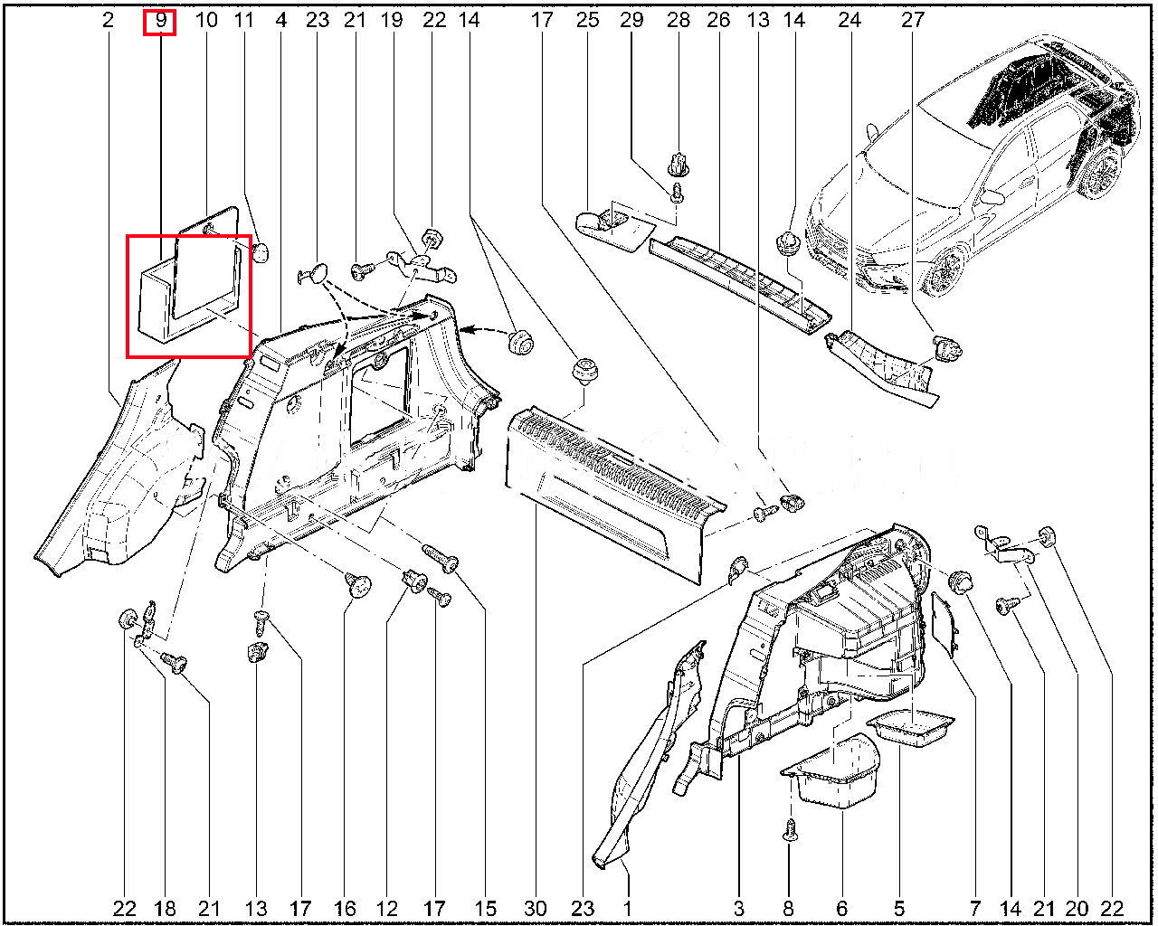 Органайзер обивки арки и боковины багажника правый для Лада Веста универсал.