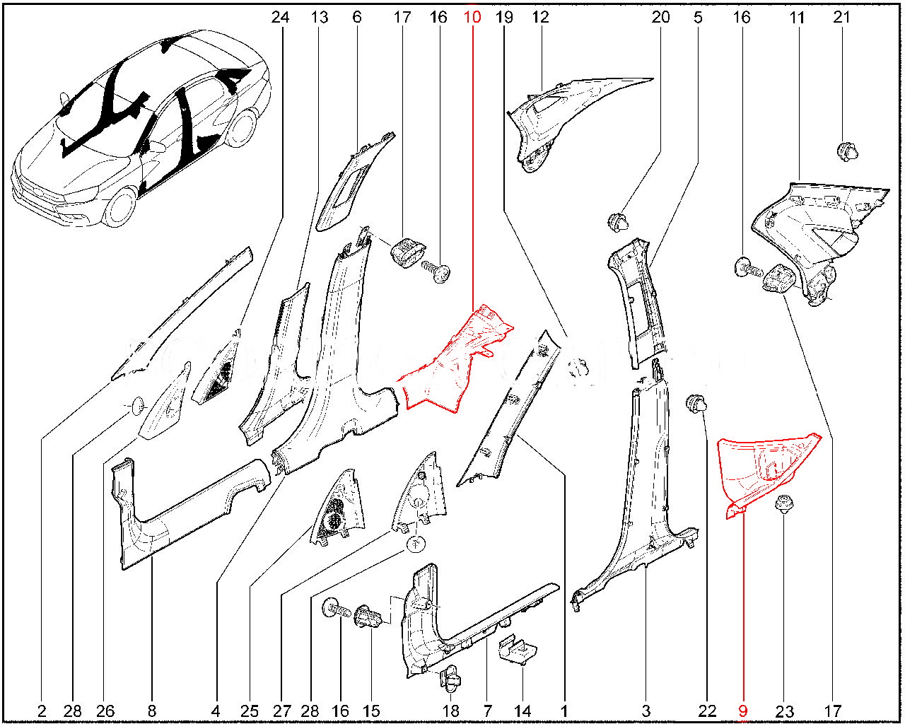 Пластиковая накладка, облицовка порога пола задняя для Лада Веста.