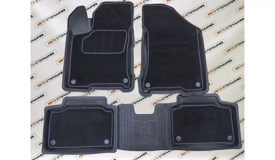 В комплект входят 4 резиновых ковра, 4 ворсовых ковра, подпятник ворсовый.