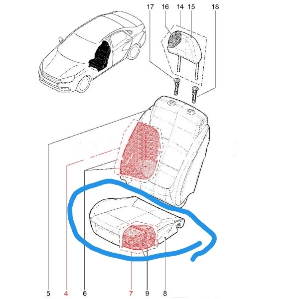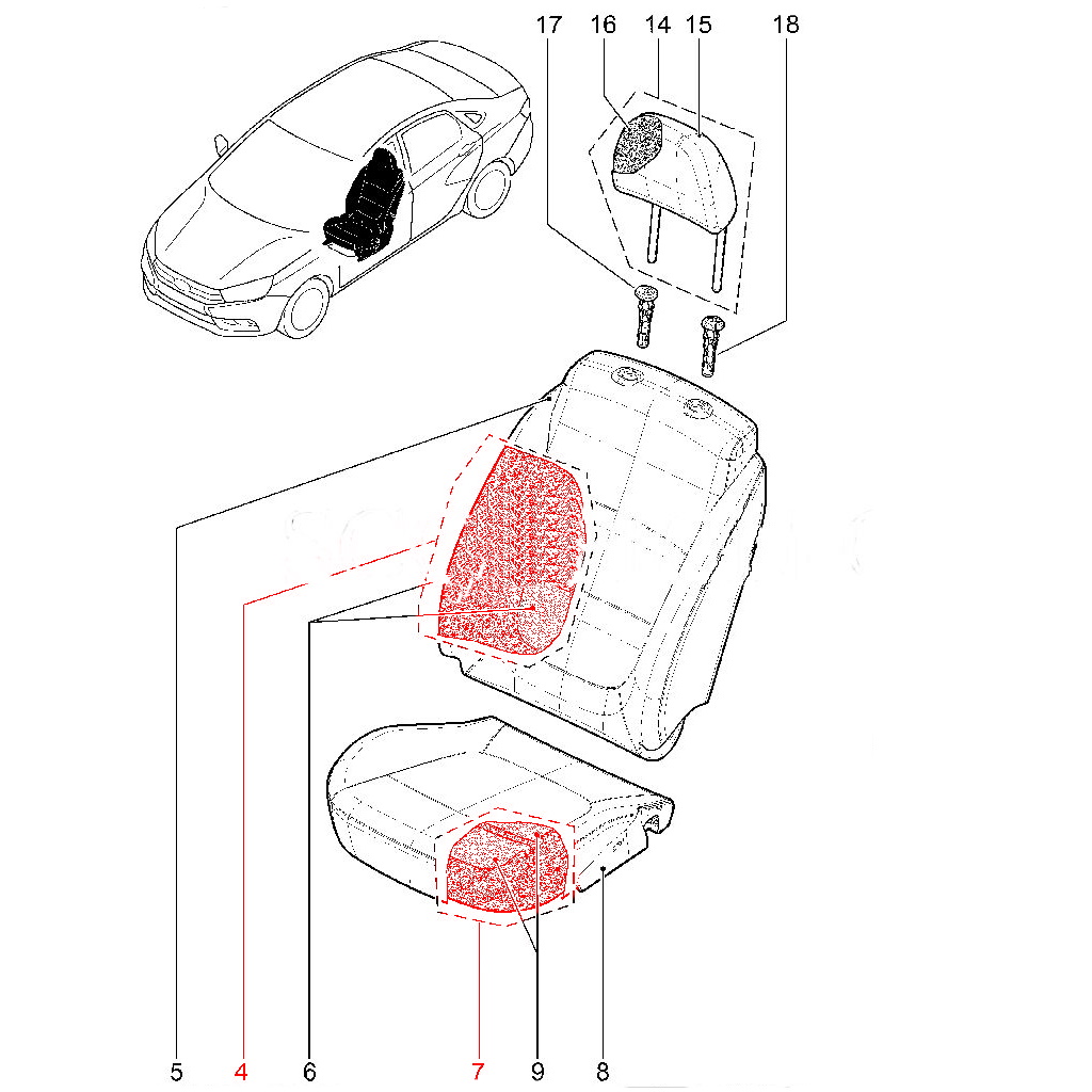 Набивка переднего левого сиденья водителя Лада Веста Спорт.