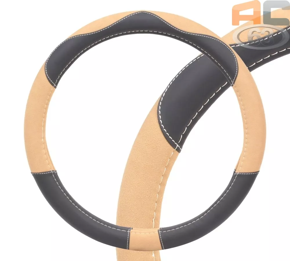 Оплетка предназначена для увеличения уровня комфорта при управлении автомобилем, а также для защиты обшивки руля от повреждений. Качественность и гарантию долгосрочного использования обеспечивает состав оплетки из иск. кожи и замшевых вставок. Цвет изделия черный с элементами песочного оттенка.