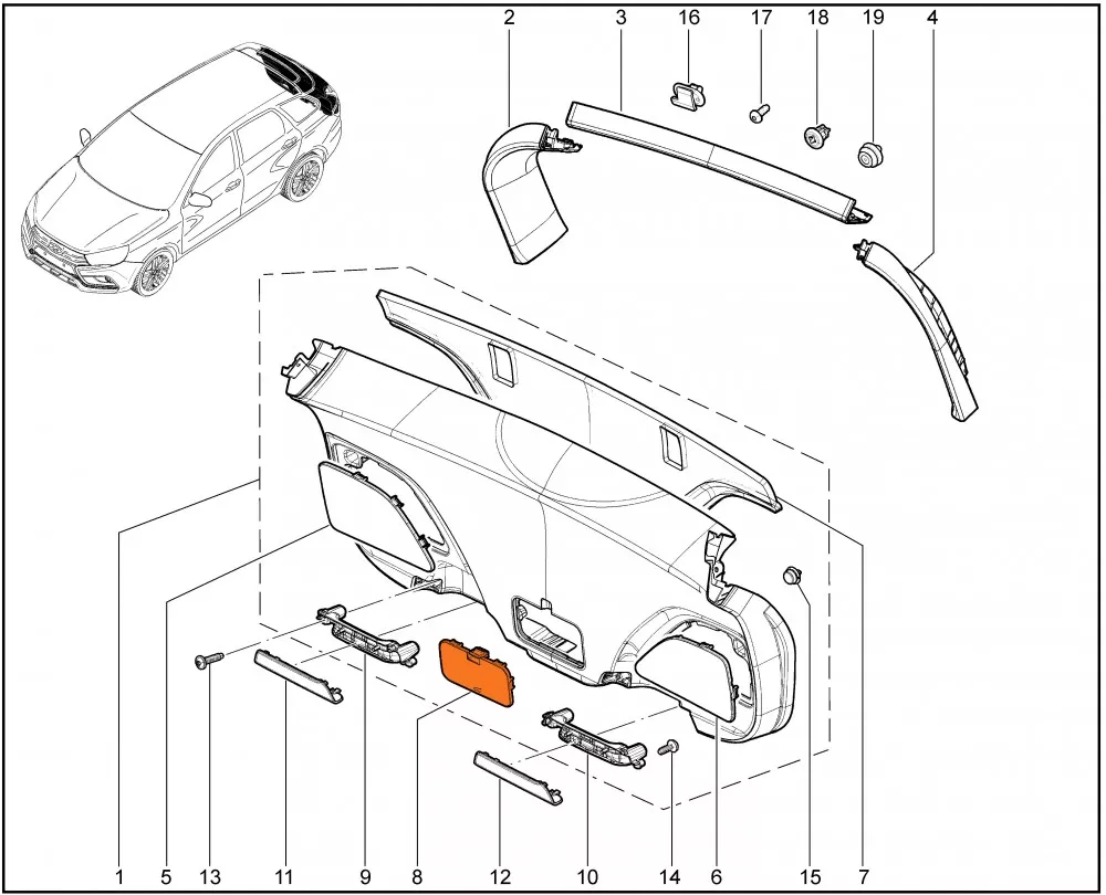 Крышка аварийного доступа к замку двери задка для автомобиля Лада Веста в кузове универсал (SW и SW Cross).