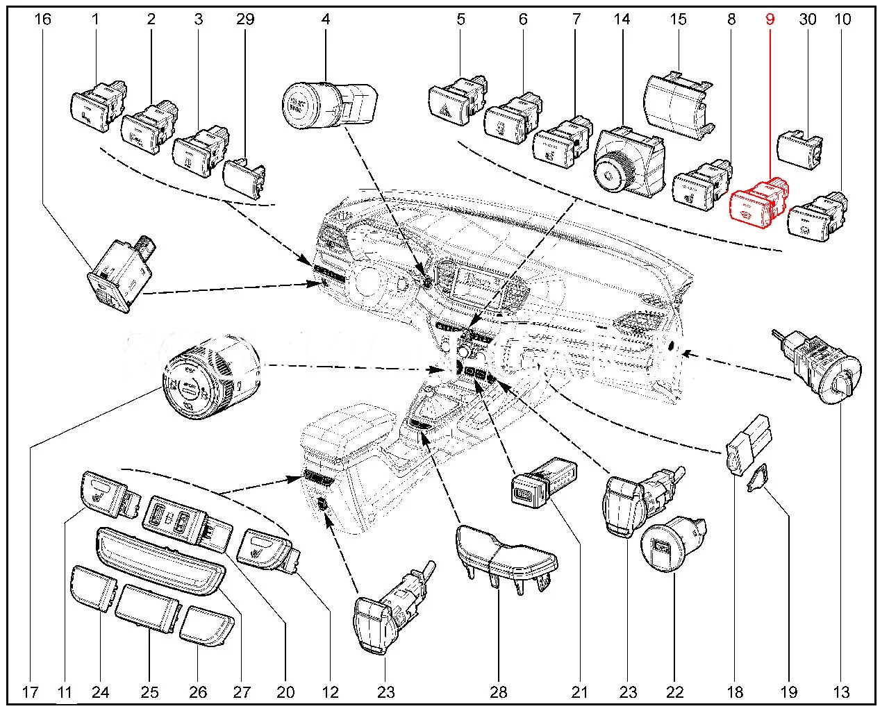 Выключатель обогрева ветрового стекла для нового поколения Лада Веста.