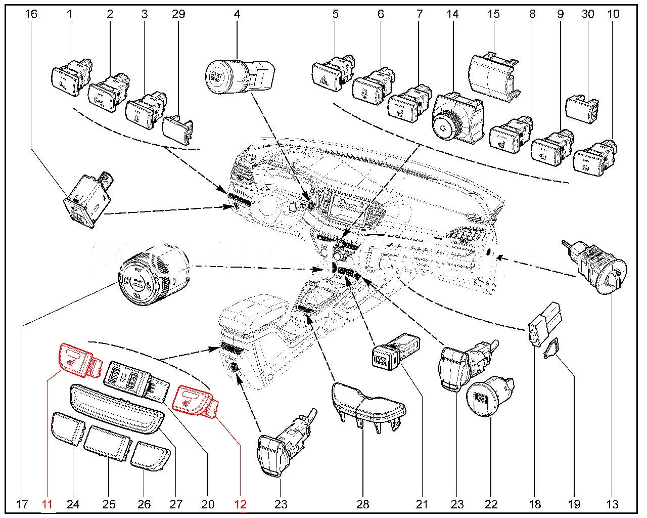 Выключатель обогрева заднего сиденья для нового поколения Лада Веста.