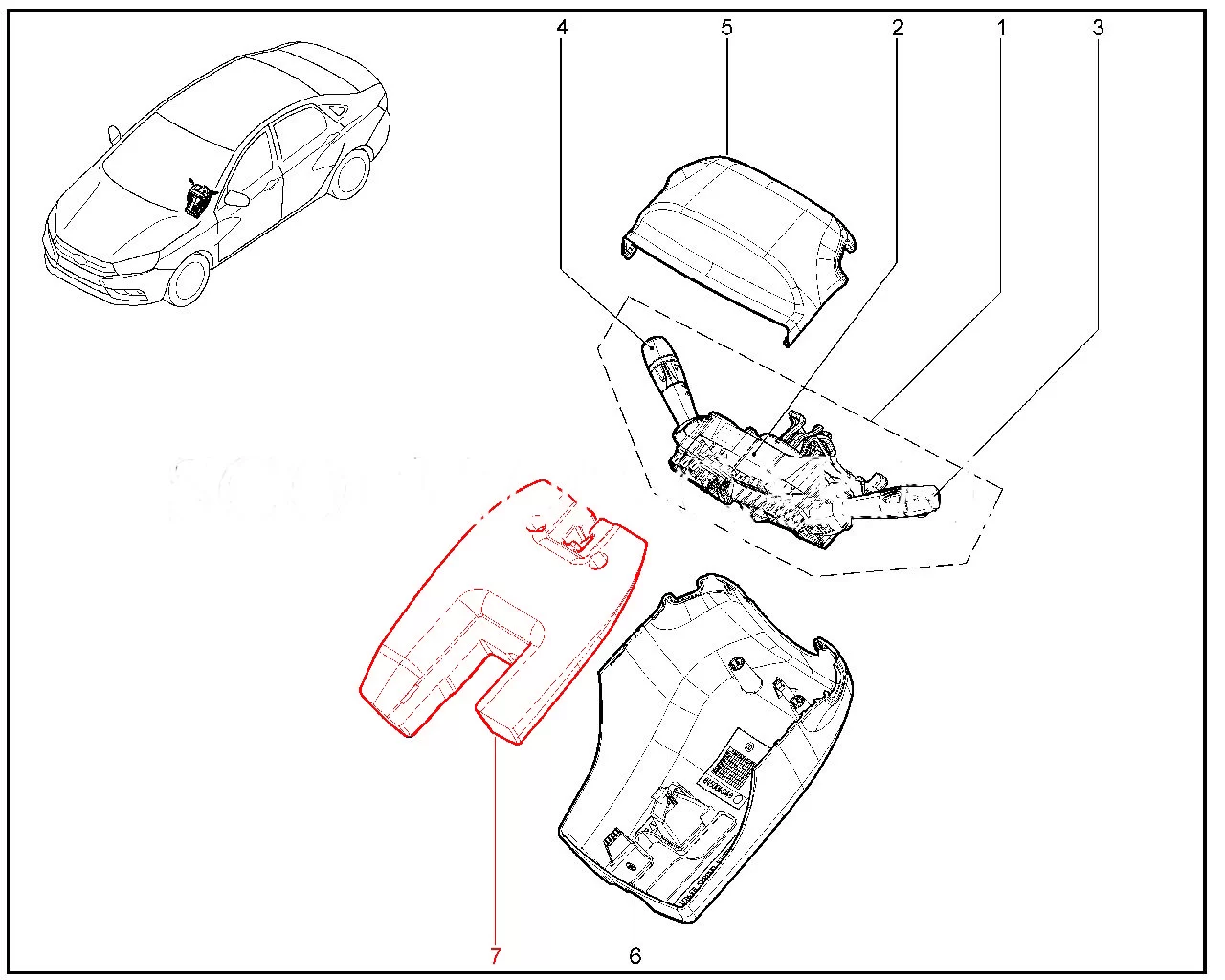 Вкладыш кожуха облицовочного вала руля для нового поколения Лада Веста.