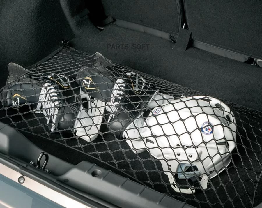 Грузоудерживающая сетка прочно фиксирует предметы малого и среднего размера от перемещений. Крепится за штатные петли в багажном отделении.