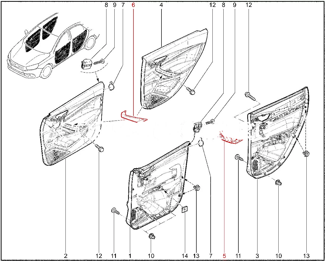 Штатная накладка ручки обивки двери черная матовая для Лада Веста новое поколение.