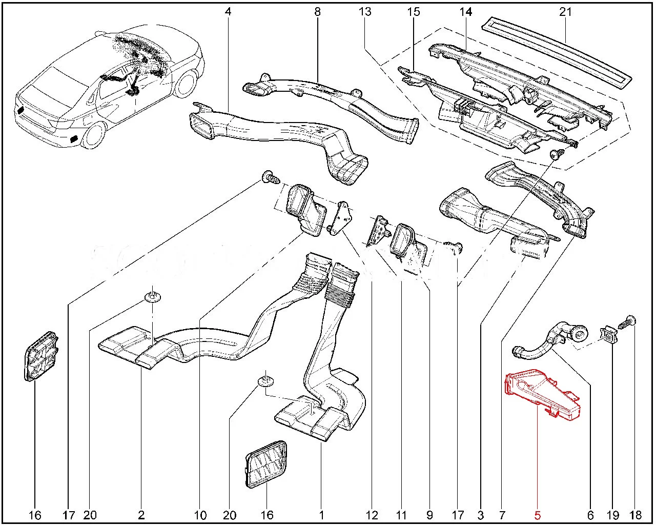Штатный воздухопровод обогрева ног переднего пассажира для нового поколения Лада Веста.