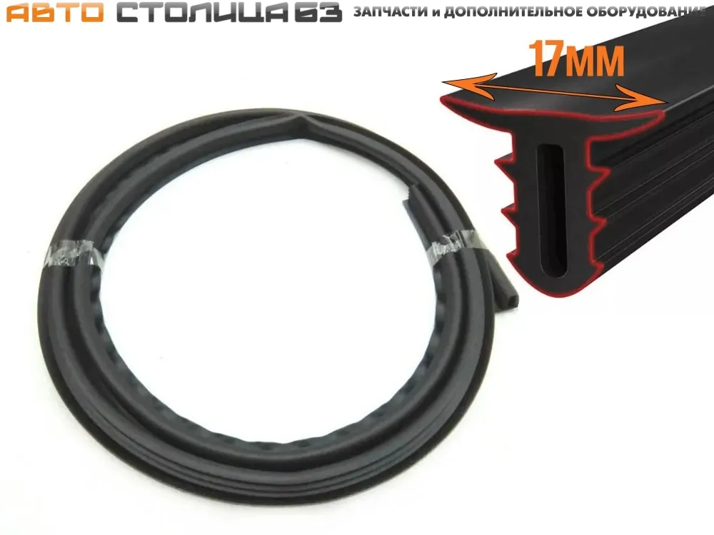 Ширина полки уплотнителя 17мм, профиль выполнен в виде ёлочки. Главное отличие от аналогов - мягкая, гибкая, эластичная резина (а не жесткий ТЭП, как у уплотнителей из Китая).
