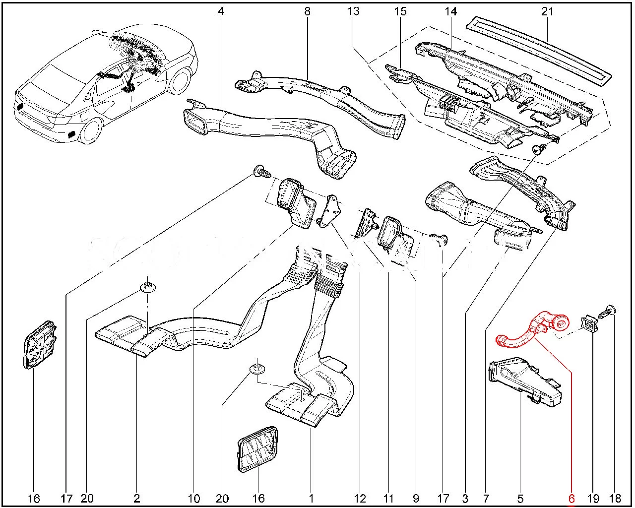 Штатный воздухопровод охлаждения вещевого ящика для Лада Веста новое поколение.