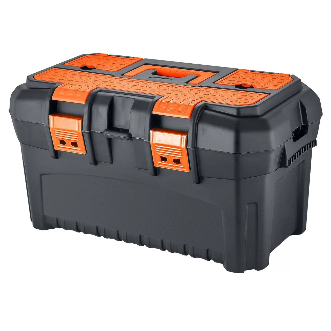 Ящик для инструментов с накидными пластиковыми замками, рассчитанными на повышенные нагрузки. Съёмный внутренний лоток позволяет отделить инструменты и аксессуары первой необходимости от основного отсека. Крышка ящика оснащена органайзерами для хранения мелочей. Наличие съемного внутренного лотка.
