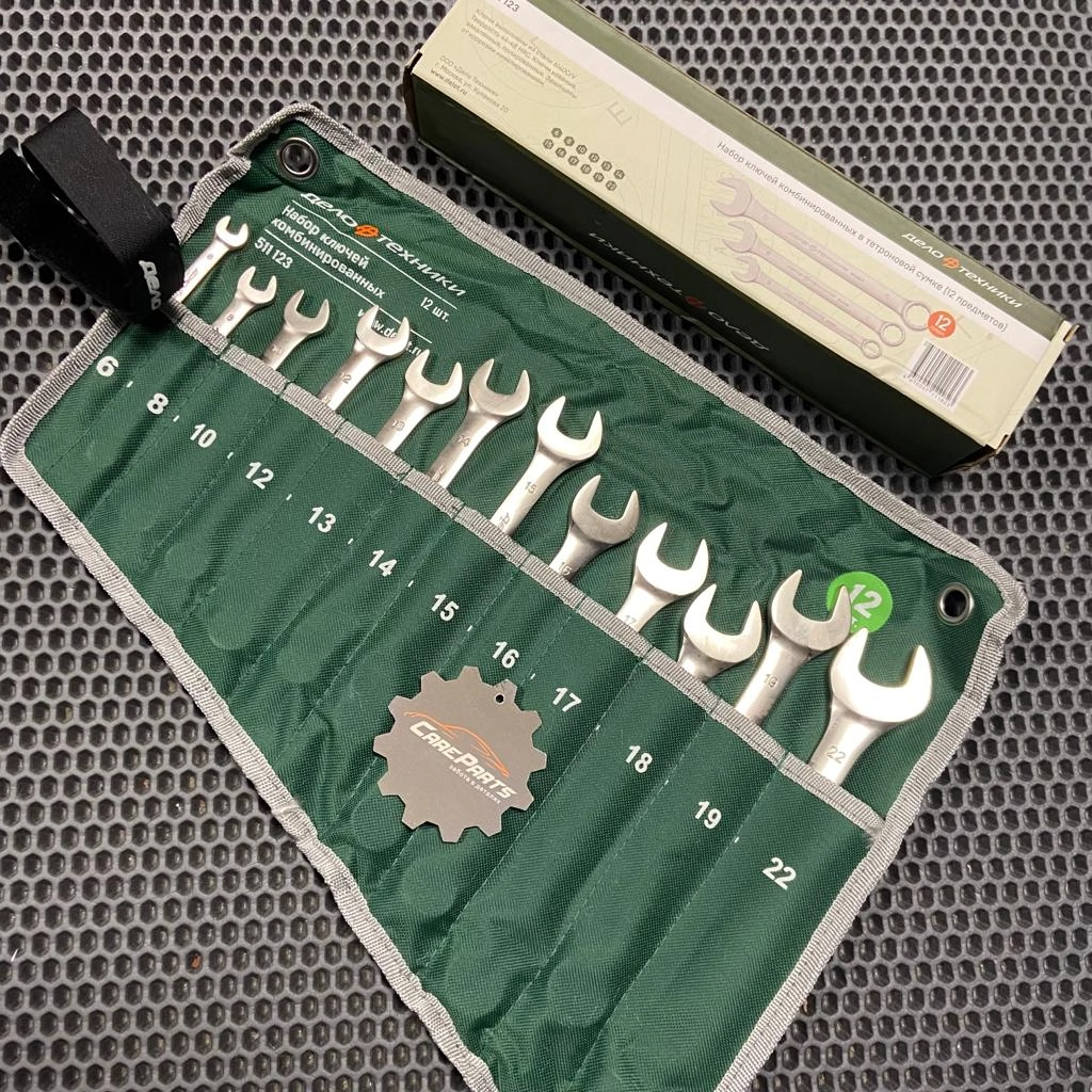 Набор из наиболее распространённых комбинированных гаечных ключей, с рожковым профилем на одной стороне и двенадцатигранным накидным профилем на другой.