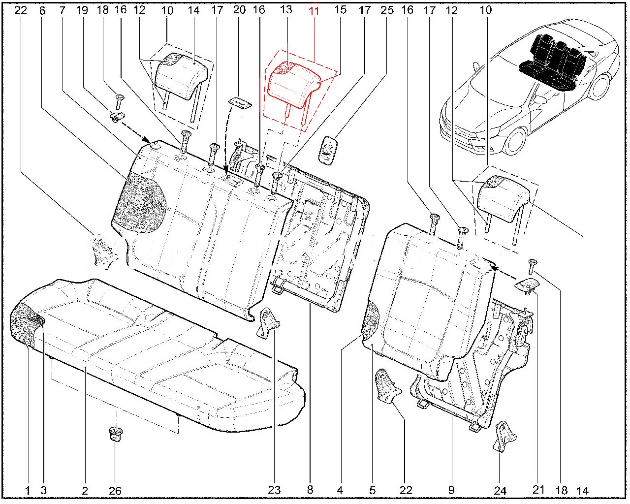 Штатный подголовник задний центральный в сборе с обивкой LUXE SANDAL для Лада Веста.