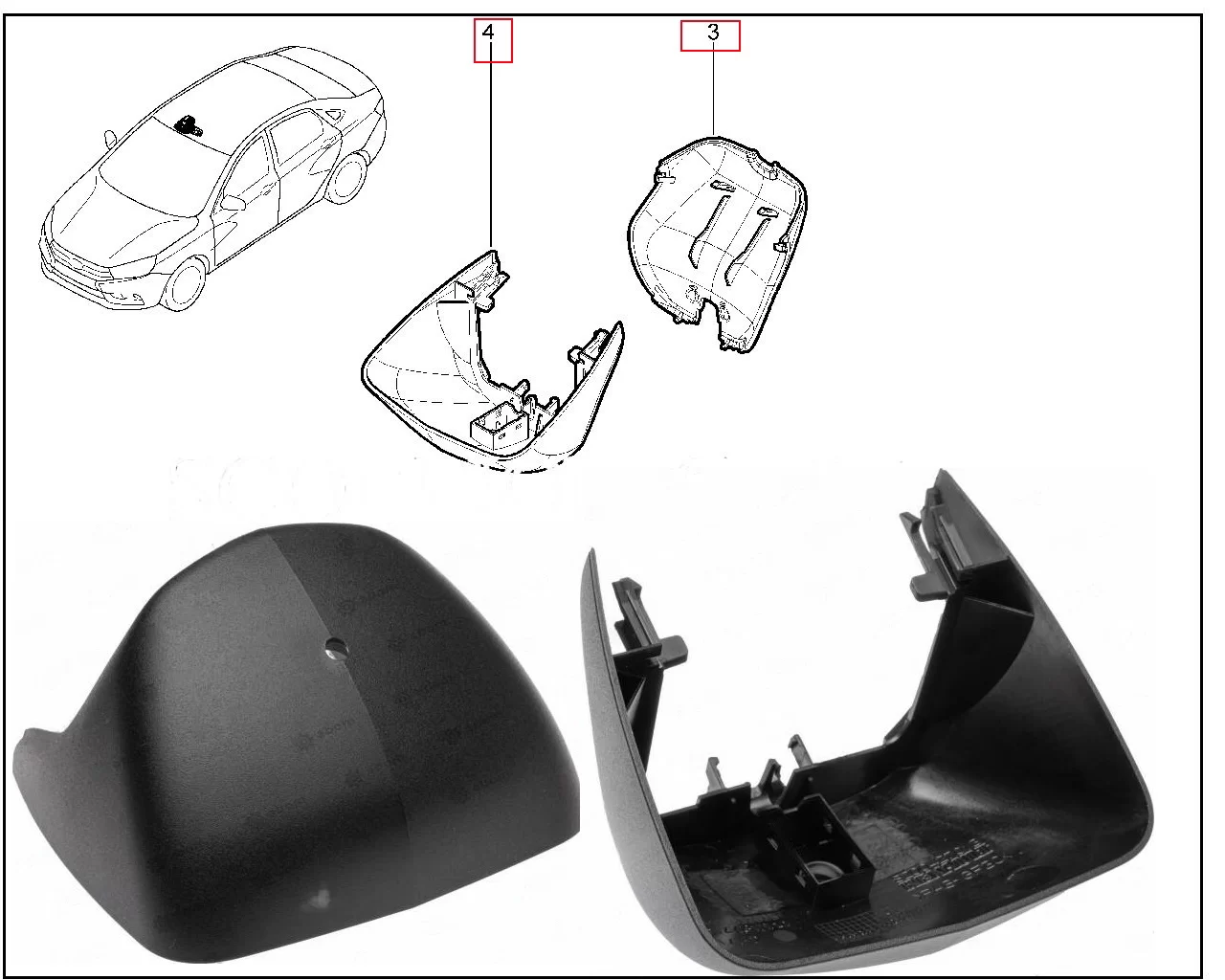 Штатные пластиковые облицовки зеркала салона черного цвета для Лада Веста, Иксрей и Ларгус ФЛ.