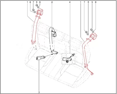 Штатный оригинальный ремень безопасности задний боковой 8450008852 для Lada Vesta.