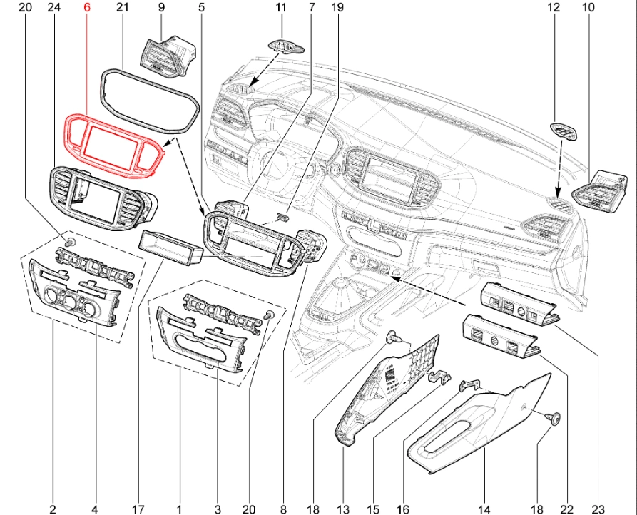 Штатная оригинальная облицовка центрального дефлектора обдува в сборе 8450045735 для Lada Vesta NG.