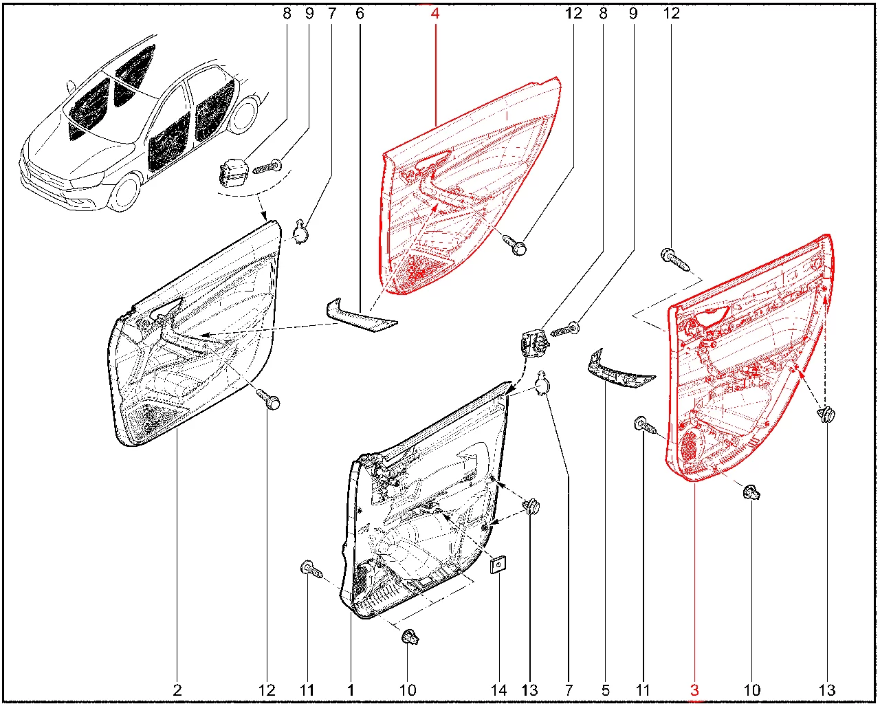 Штатная оригинальная обивка задней двери для Lada Aura.