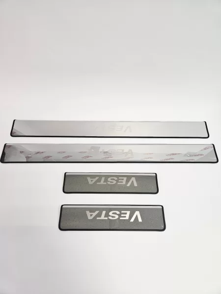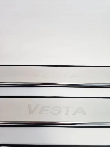 Комплект хромированых накладок из нержавющей стали для автомобилей LADA Vesta с резиновой окантовкой.