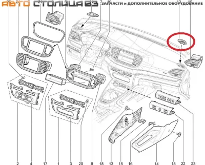 Устанавливается в правой верхней части панели приборов, над боковым соплом (дефлектором) вентиляции салона. Данное сопло, в отличии от боковых, не имеет настроек и служит исключительно для обдува бокового стекла.