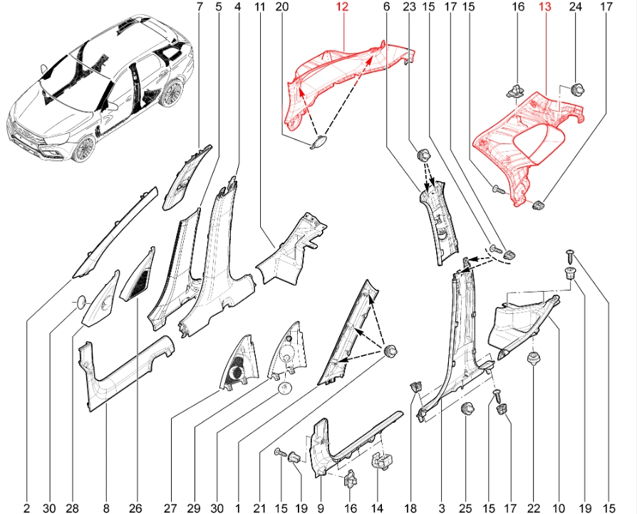 Штатная оригинальная обивка стойки задка черная для Lada Vesta NG SW, SW Cross.