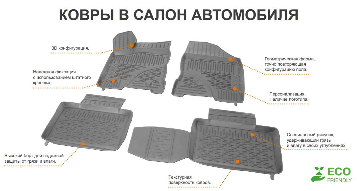 Текстурная поверхность усиливает сцепление ковров с напольным покрытием автомобиля, предотвращая их смещение;