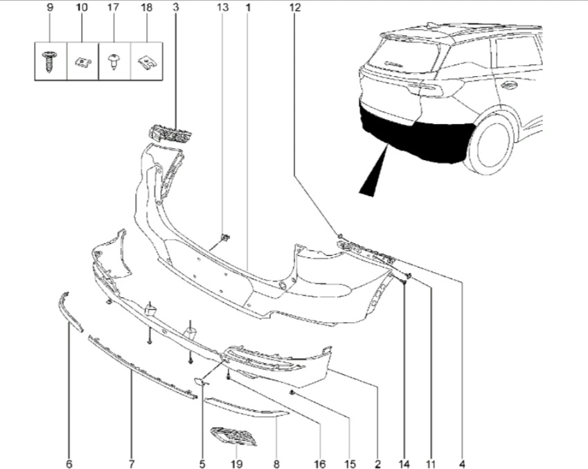 Штатный оригинальный бампер задний XCITE X-Cross 7, Chery Tiggo 7 Pro.