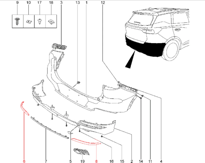 Штатная оригинальная накладка заднего бампера t1e для XCITE X-Cross 7.