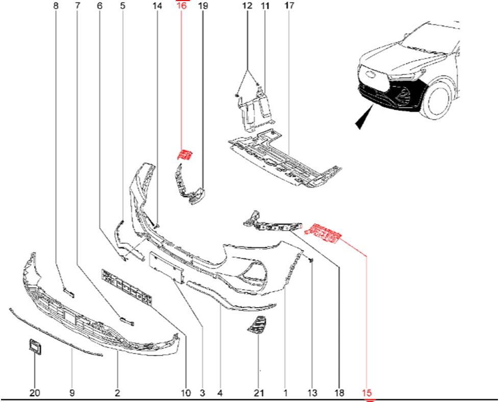 Штатная оригинальный кронштейн переднего бампера T1e для XCITE X-Cross 7, Chery Tiggo 7 Pro.