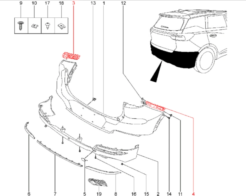 Штатный оригинальный кронштейн заднего бампера для XCITE X-Cross 7, Chery Tiggo 7 Pro.
