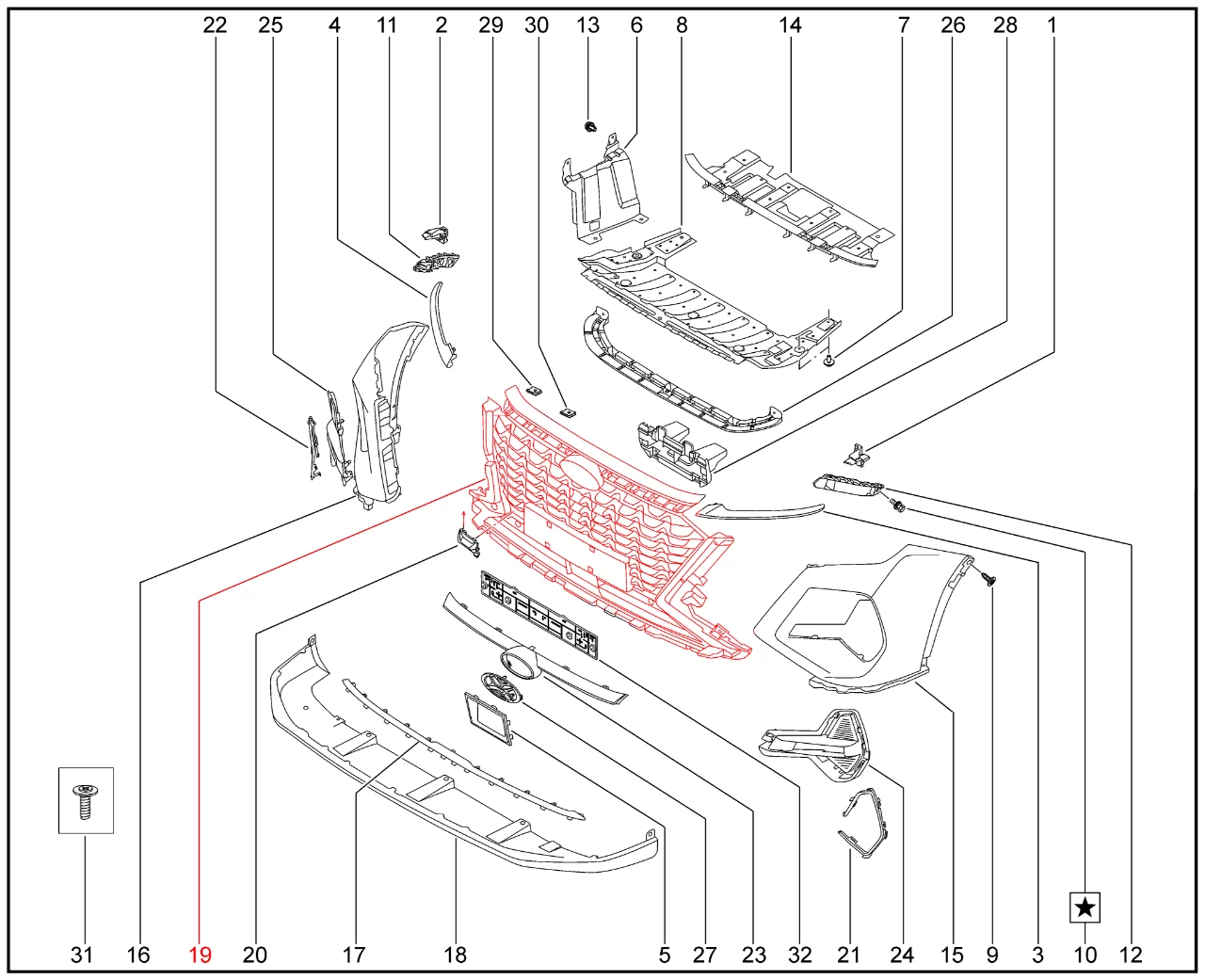 Штатная оригинальная решетка радиатора для XCITE X-Cross 8, Chery Tiggo 8 Pro.